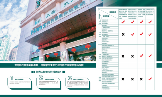 济南韩氏整形外科医院以三级整形外科医院的身份行使标杆带头作用,将消费者从面诊到手术、产品细节到空瓶源头等一系列操作透明化,率先揭开整形美容行业“神秘”面纱,以此唤醒品牌价值的共生效应,联合优质整形机构竖起防御网,给予消费者一片安全有效的净土。