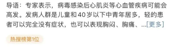 “阳过后小心病毒性心肌炎”话题一度冲上热搜榜第一