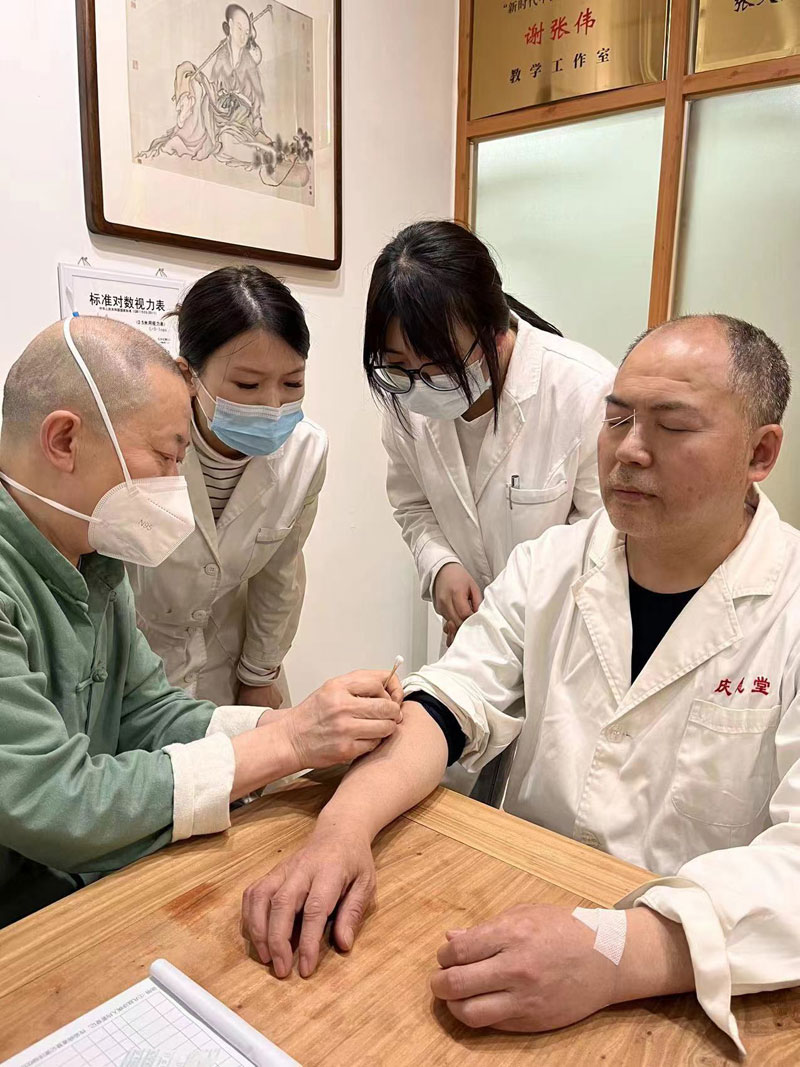 “张氏扶阳针灸”是重庆著名针灸流派,创始人为针灸名家徐述卿,由第三代传承人张天政发扬,2023年被列入市级非物质文化遗产名录。“张氏扶阳针灸”手法讲究双手进针形成了升阳扶正、内外同治、以脉定针的扶阳针灸治疗思路。结合采用了推拿补阳、针灸助阳、艾灸升阳三种扶阳方法,针对不同证候,还运用温阳、通阳、升阳、潜阳、接阳的用阳理论,对于因阴阳失衡、阳气亏虚导致的疾病治疗效果颇为理想,因病人的认可而传承至今。