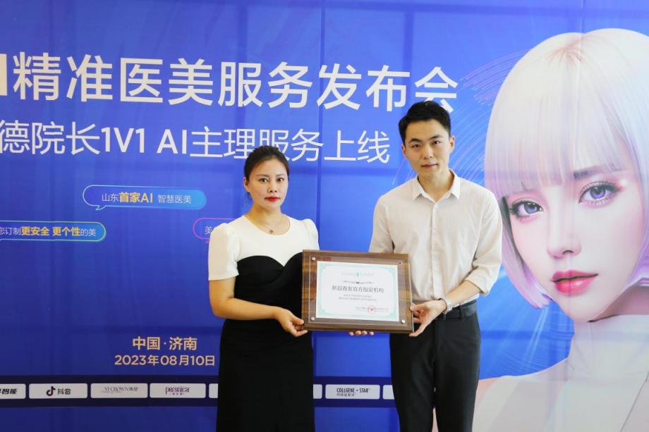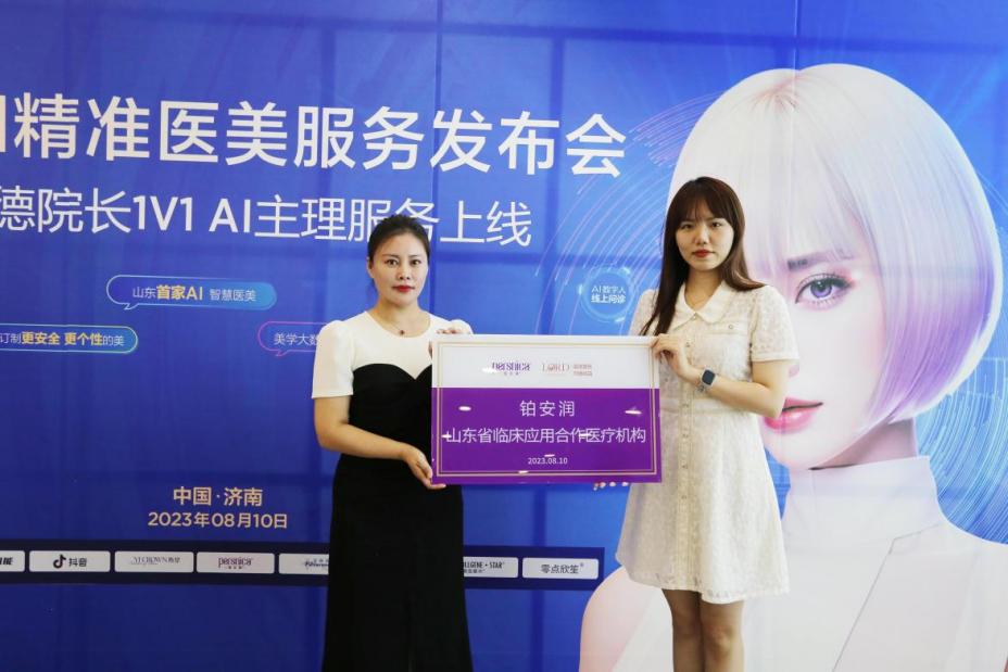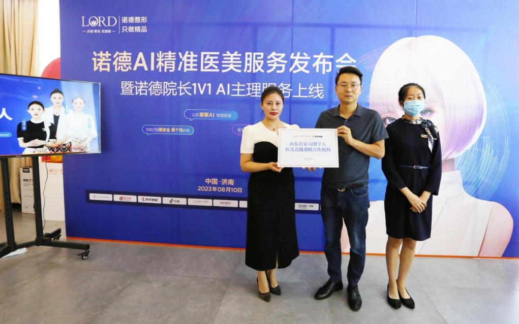 风平智能IP智造·山东青众网络信息技术有限公司总经理张杰先生现场见证诺德整形成为山东首家AI智慧医美机构的落成仪式,并授予“山东首家AI数字人医美直播战略合作机构”。其表示:“AI数字医美是医美垂直领域的人工智能,与传统的医疗美容咨询不同,AI医美能够极大程度以专业角度答复求美者,帮助机构实现自动化客服、智能问答、在线咨询等功能。我们为诺德量身制定三位AI数字人,分别是我们的君君院长、灿灿院长,还有美女主播可可,通过视频科普的形式,为大家带来美学互动。能与致力“诺德整形·只做精品”的品牌机构合作是非常令人愉快的,诺德整形已然成为AI智慧医美的行业标杆,在AI技术高速发展的今天,运用智能科技打造数字化美学新尚标!”