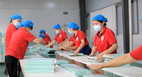 在该集团蕲春县生产基地看到,12条全自动生产线已开足马力,每天可生产中药眼贴、蕲艾系列产品100余万片。自上月以来,已经恢复到疫情发生之前的最佳水平,目前订单已排到7月份。