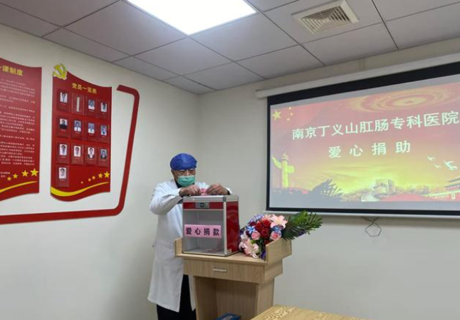 南京丁义山肛肠专科医院党支部将全院党员及医护人员捐赠的款项,送到了患者戴先生的手中,这是在南京丁义山肛肠专科医院病房中发生的“医者大爱”感人的一幕。