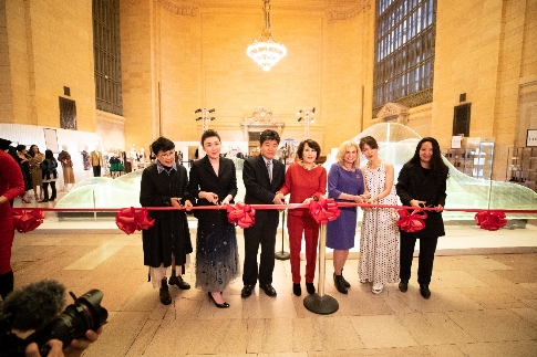 PLAY LOUNGE品牌创始人王宁女士、中美文化大使靳羽西女士、纽约总领馆文化参赞李立言、美国国会女议员Carolyn Malone等,出席了26日下午的中央火车站举行的VIP开幕仪式,并为快闪店剪彩。活动现场还邀请到希拉里·克林顿造型师Rushka Bergman,以及众多媒体、KOL,进入PLAY LOUNGE的秘境感受国坎的魅力。现场PLAY LOUNGE品牌创始人王宁女士还接受了包括CCTV、新华社等在内的5家媒体的采访,现场解读中国原创设计和国坎的时尚定义,让这场国坎风潮席卷纽约。