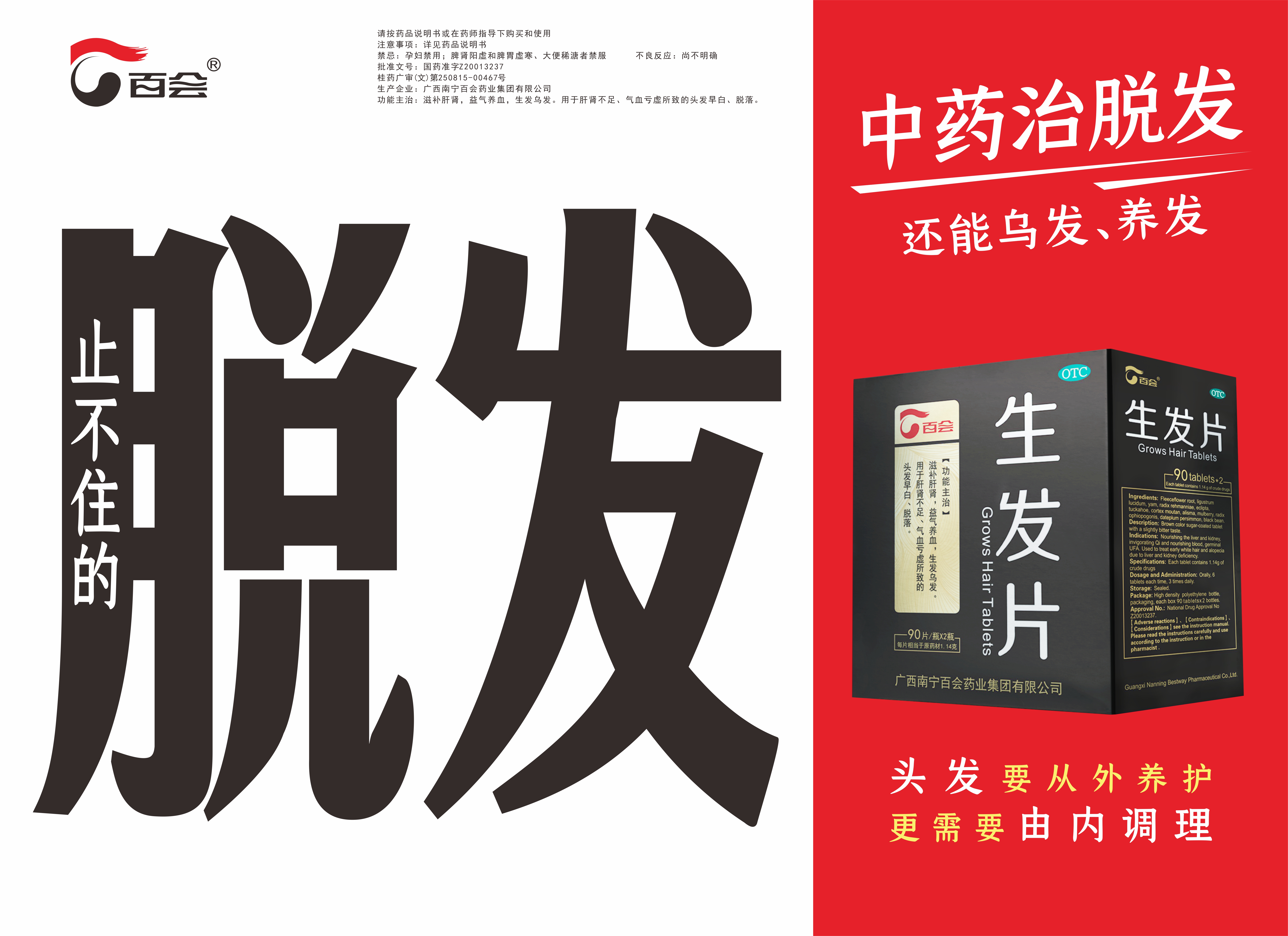 由此,各代中医家在对斑秃进行治疗过程中,发展至今,积累了众多验方。百会生发片就是其中之一,通过精选何首乌、女贞子、墨旱莲、桑葚子等12味地道名贵植物药浓缩成片,从根本调整机能失调所导致的脱发、白发,与中医脱发、斑秃治疗原理相符合。可以滋补肝肾,益气养血,生发乌发,用于肝肾不足、气血亏虚所致的头发早白、脱落。全国独家品种,绿标OTC,国药准字批文,品质疗效有保障。皮肤科临床试验文献数据支撑,2~4周快速止脱,4~5周生发,2~3个月白发转黑,止脱率高达96.48%,斑秃、脂秃、全秃等均可对症服用。