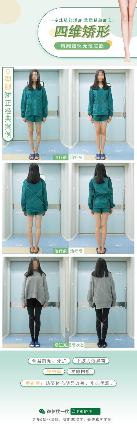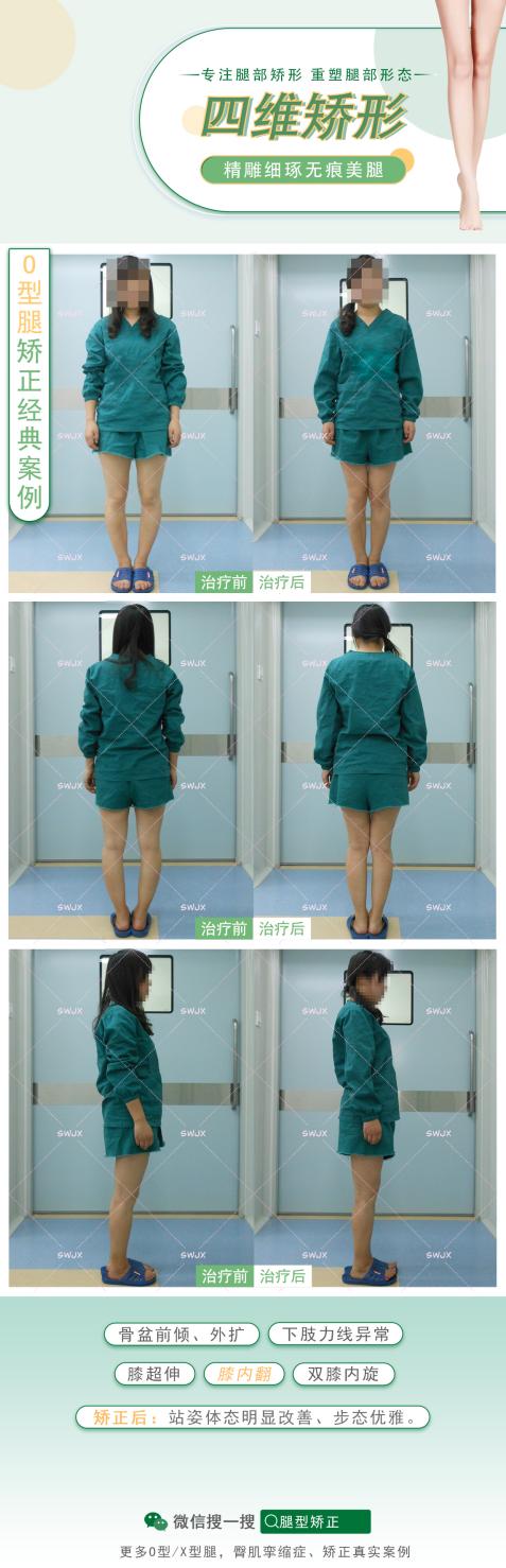 四维矫形这种非手术矫正方法,具有微创无痕、矫正时间短、矫正效果好、矫正方式安全等优势。深受广大腿型异常患者青睐,截止目前,已有5000余名腿型异常患者经过四维矫形治疗后恢复腿型健康,拥有笔直匀称腿型。